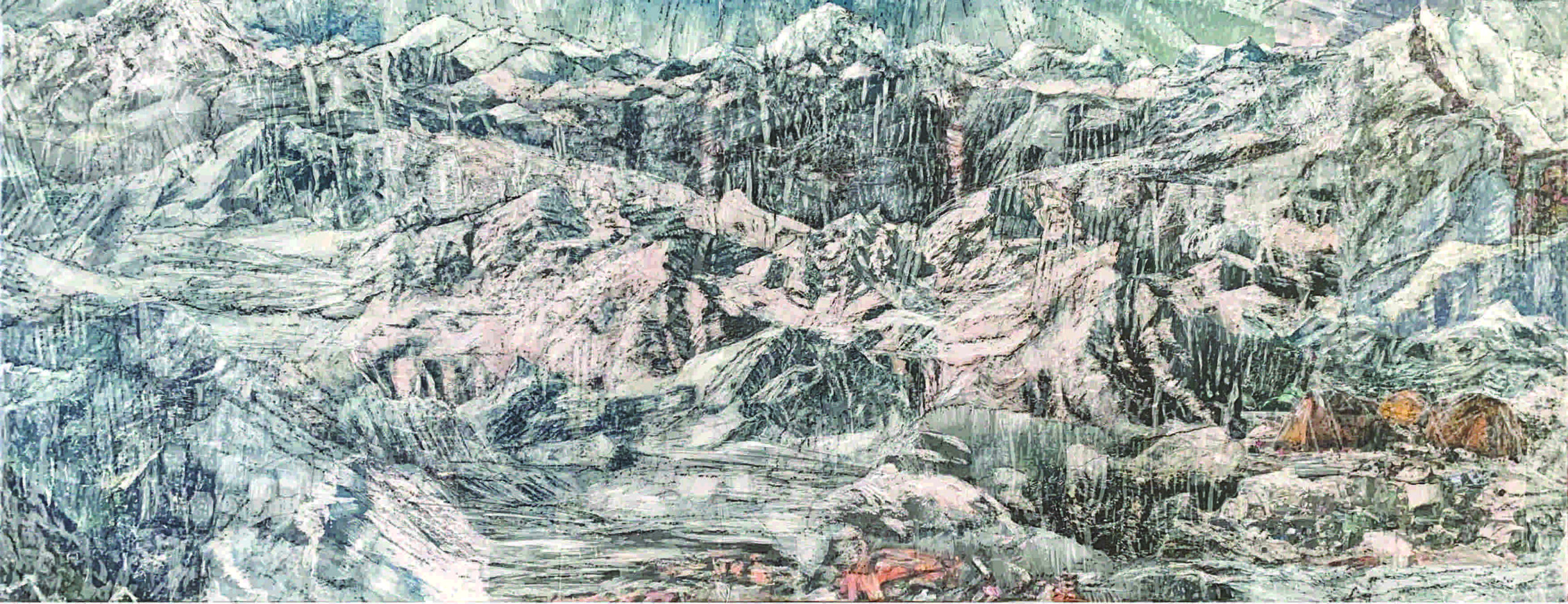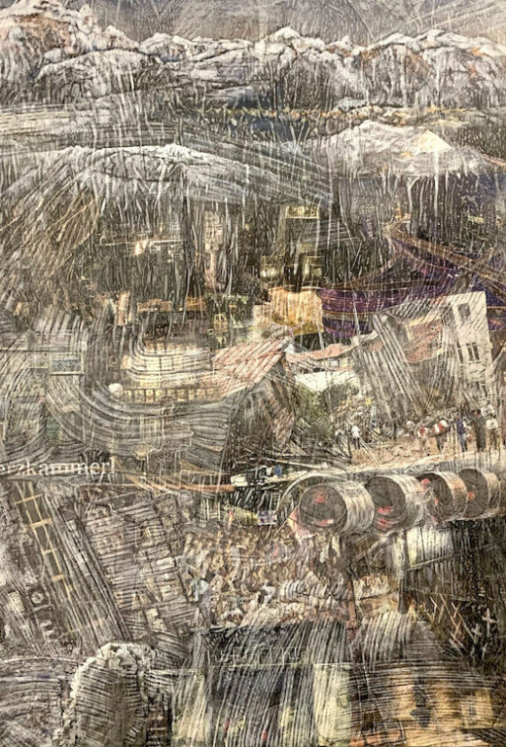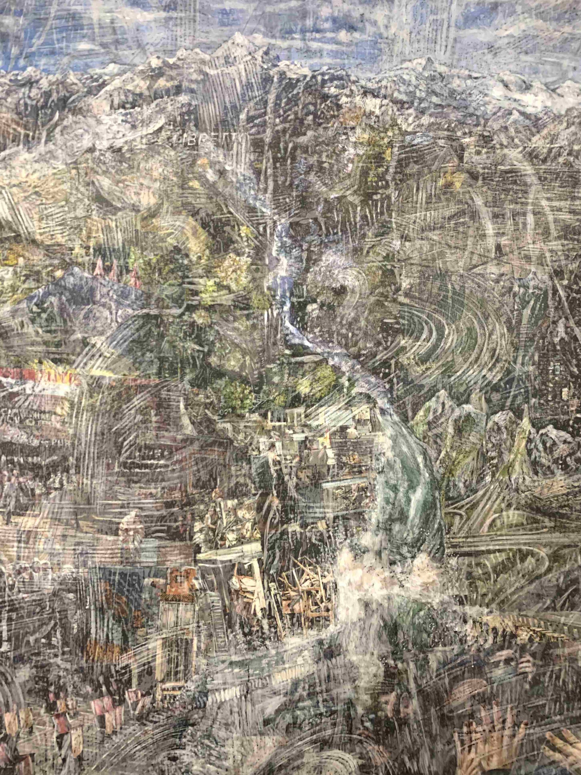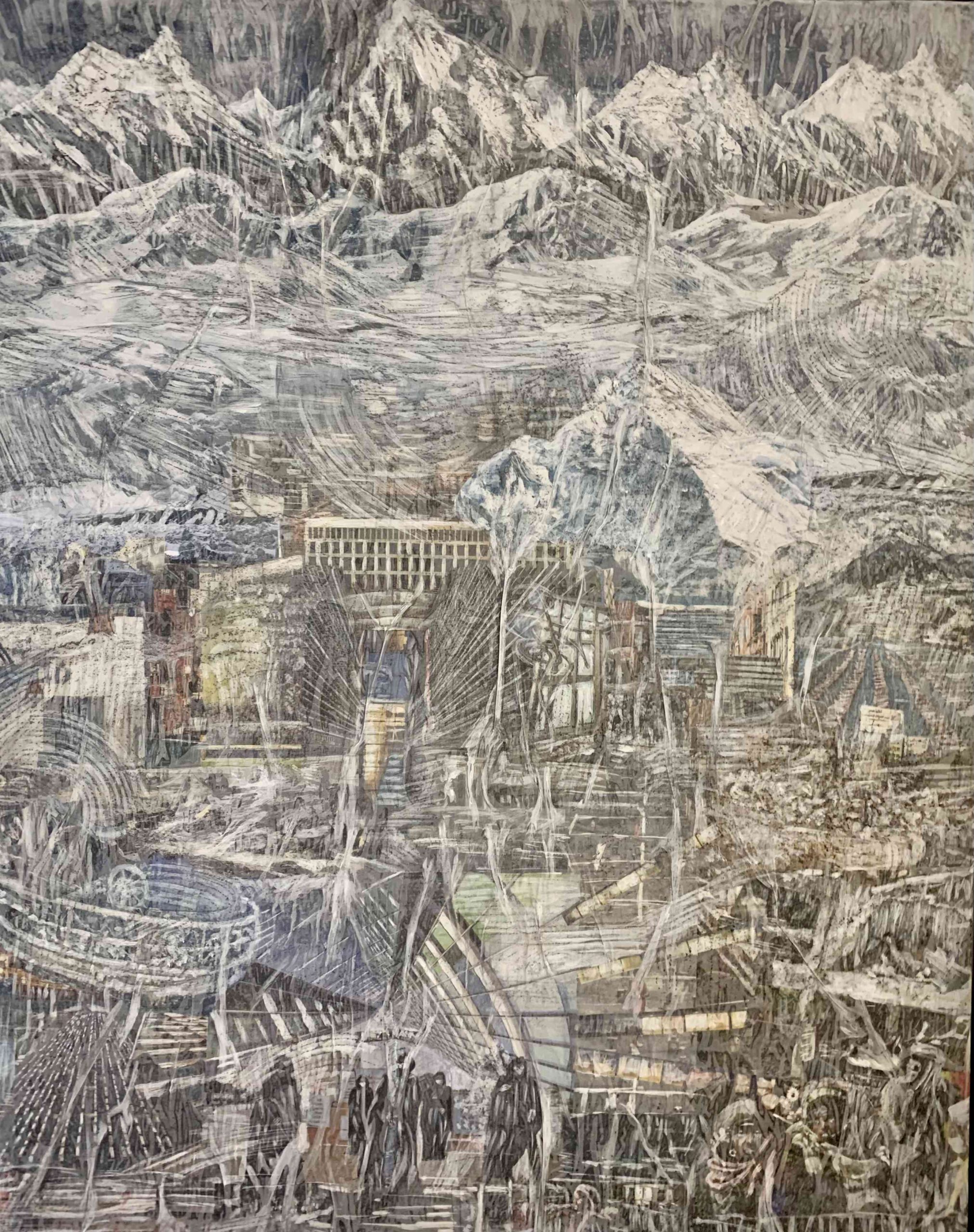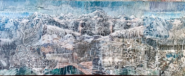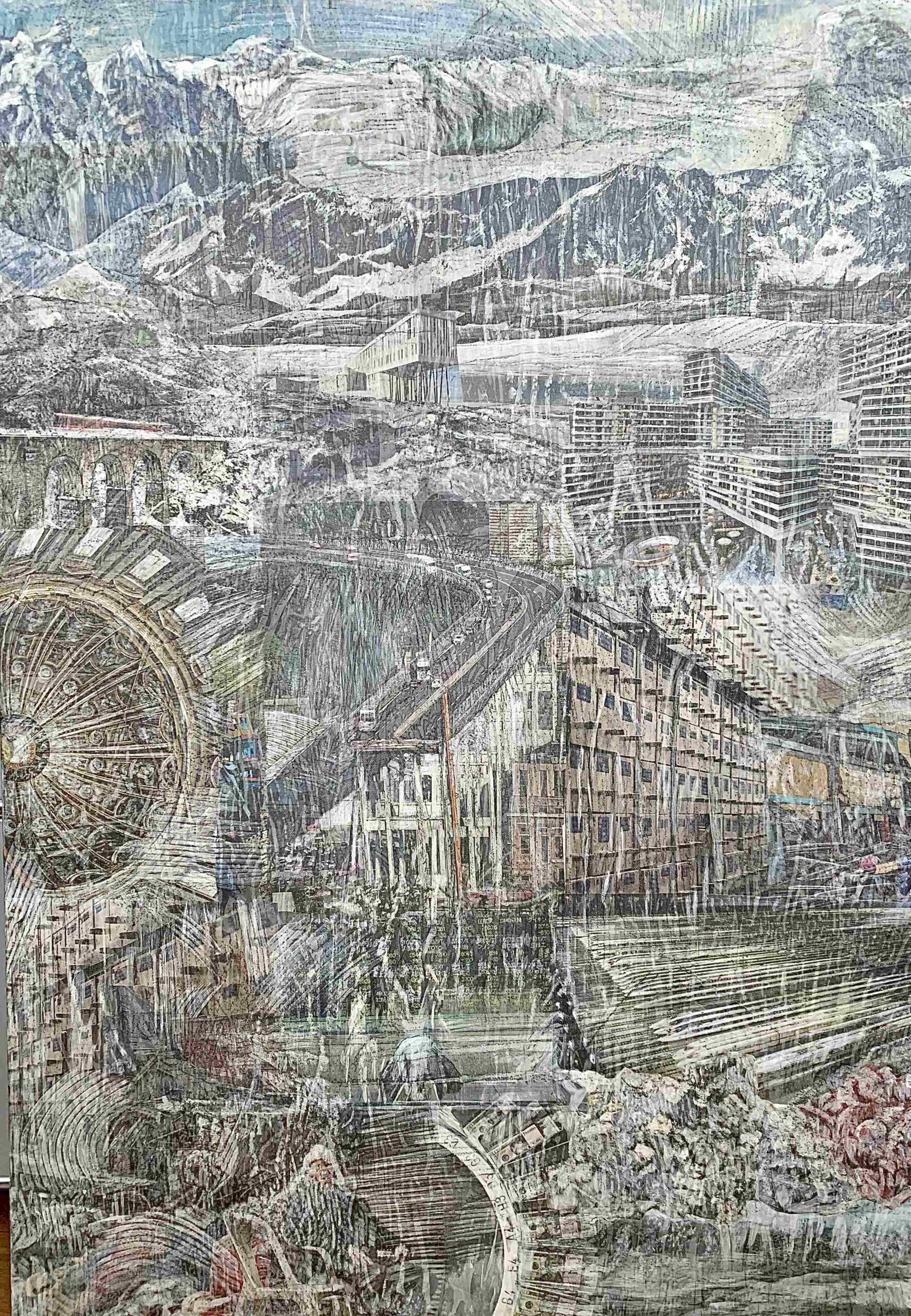 2017 verändern sich Bildtechnik und Bildaussage. Die Landschaftsbilder werden mit aktuellen Lebens-, Kultur- und Erfahrungswelten erweitert. In der Verknüpfung von Collage, Frottage, Zeichnung und Malerei verschmelzen Realitätssplitter aus der medialen Bilderflut, topografische Ansichten, Natur- und Zivilisationsfragmente zu einem kleinteiligen halbtransparenten Bilddickicht. Man muss es visuell durchwandern, um am oberen Ende der Bildfläche die Bergwelt als idealisierter Gegenpol, als Sehnsuchtspanorama zu erreichen.